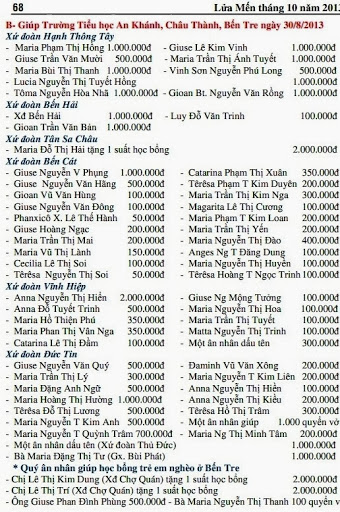 Khoảng 10giờ 30. Đoàn đến Trường Tiểu Học An Khánh. Ở đây Đoàn phát Học bổng cho 3 học sinh nghèo hiếu học và 52 phần quà cho 52 em có hoàn cảnh khó khăn .4000 quyển vở , thước kẻ bút chì cũng được trao cho nhà trường .Mặc dù món quà tuy không lớn nhưng đã là nguồn động viên rất lớn đối với các cháu , Như lời phát biểu của một em học sinh đại diện “Quý vị đến chúng con , giúp chúng con duy trì sự học vấn , quý vị là ngọn đuốc thắp sáng niềm tin , là cây đại thọ chúng con muốn tìm về nương tựa … “. Cùng với sự biết ơn những tấm lòng nhân ái, đại diện ban Giám hiệu nhà trường cũng đã bày tỏ lòng cám ơn bằng sự đón tiếp rất chân tình và vui vẻ.